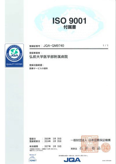 本院は、2004年6月にISO9001の認証取得を目標に掲げ、同年7月から取り組みを開始し、2005年4月8日にISO9001の認証を取得しました。