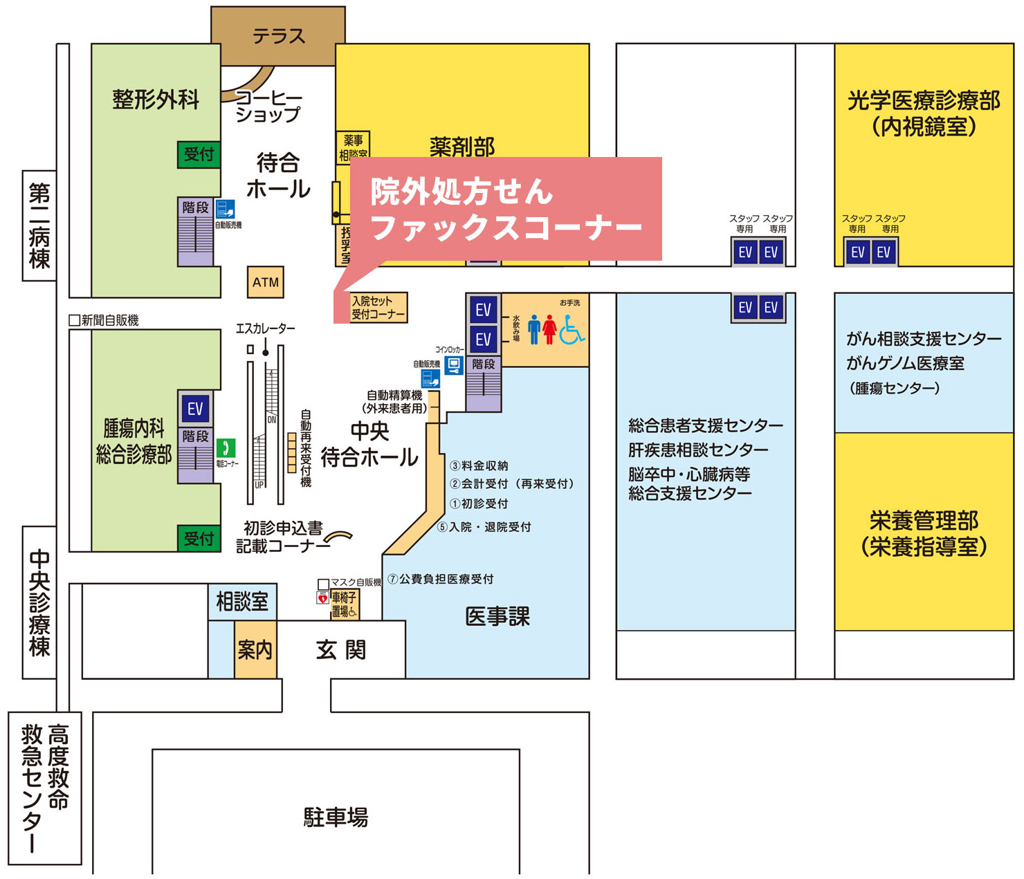 外来診療棟1階 案内図(院外処方せんファックスコーナー)